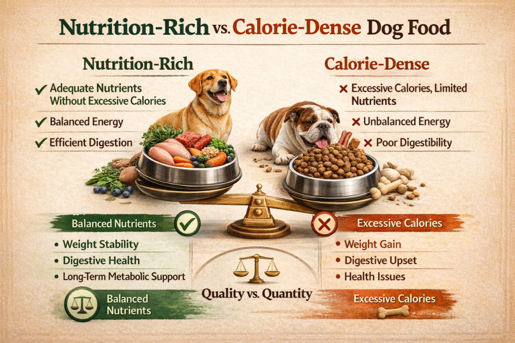When it comes to dog food, “nutrition-rich” doesn’t mean heavy, indulgent, or packed with extra calories. It means something much more important: the food is dense in useful nutrients, biologically appropriate, and efficiently used by your dog’s body.